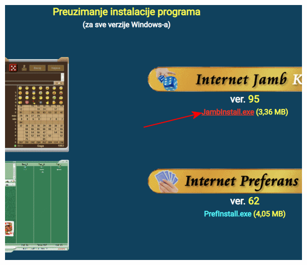 Ovde je prikazano uputstvo za instaliranje programa Internet Jamb Klub. Na isti način se radi i instaliranje programa Internet Preferans Klub. Prikazane slike su iz programa Google Chrome. Slična procedura je i kod drugih pregledača.