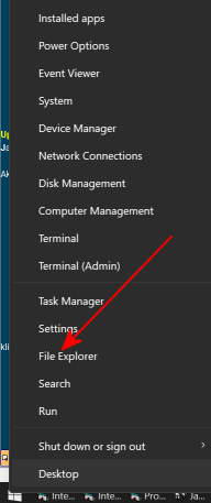 Ako niste uspeli da pronađete instalaciju jambinstall.exe, potrašite je na drugi način. Kliknite desnim tastermo miša na dugme 'Start' (donji desni ugao desktop-a), pa kliknite na File explorer':