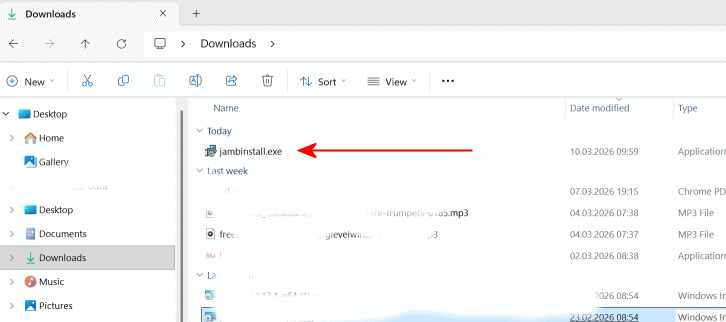 Prikazuju se poslednji preuzeti fajlovi. Kliknite na JambInstall.exe: